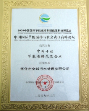2009年3月在胡錦濤、溫家寶等中央領(lǐng)導(dǎo)出席的中國國際節(jié)能減排與新能源科技博覽會(huì)和高峰論壇上評(píng)為“中國十佳節(jié)能減排先進(jìn)企業(yè)”。